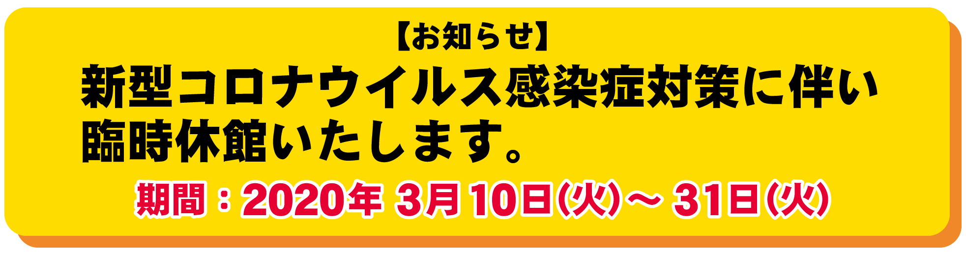 新型コロナウイルス感染拡大防止策による臨時休館について