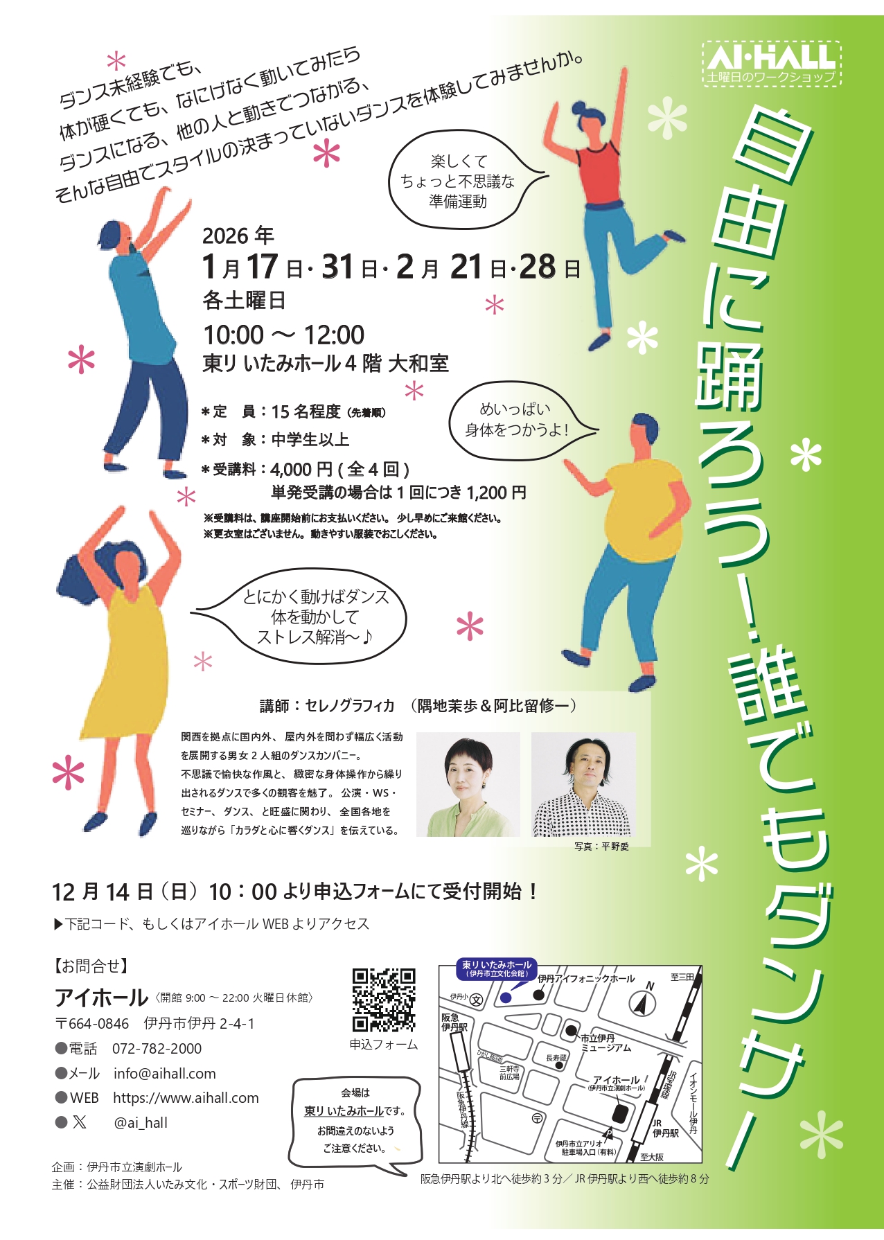 - 2025.10.15 【速報】「アイホール・ショーケース ~イタミつながるブタイのミライ~ 」参加アーティスト・団体のお知らせ